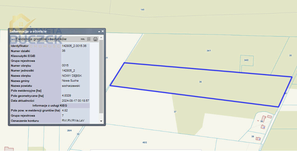 Na sprzedaż działka rolna o łącznej powierzchni 4,83 ha, położona w miejscowości Nowy Dębsk, gmina Nowa Sucha, powiat Sochaczewski, województwo Mazowieckie. Działka ma , zbliżony do prostokątnego kształt o szerokości 105 oraz 85 metrów oraz długości 540 metrów, co daje szerokie możliwości zagospodarowania terenu. Na nieruchomości gruntowej nie został ustanowiony MPZP.Na działce znajdują się następujące klasoużytki: